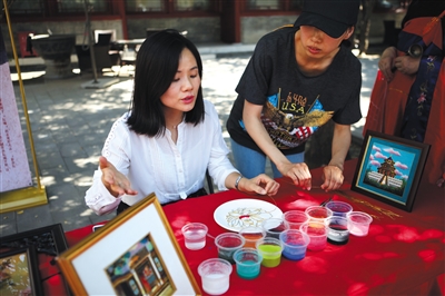 今年6月29日,西城区非物质文化遗产保护中心,非遗传承志愿者为市民介绍彩砂工艺。当天,西城区启动非遗项目传承志愿者招募活动。活动共设5个项目,包括木板年画、京作核雕等。资料图片/新京报记者 王嘉宁 实习生 梁思成 摄