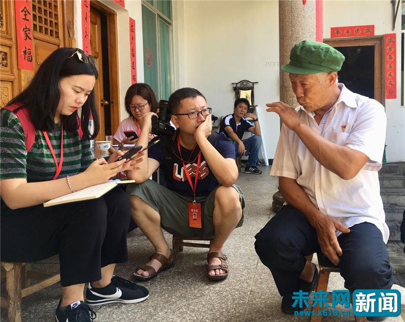 尹相明(右)在向记者介绍崇仁村这些年的发展变化。未来网记者 程婷 摄