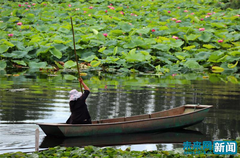 洱源水质大为改善的茈碧湖,碧波荡漾,荷叶田田。未来网记者 程婷 摄