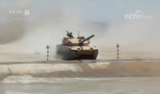 这是坦克在通过车辙桥障碍,每边桥面比坦克履带稍宽,郭圣东驾驶坦克以每小时40公里以上的速度开上桥面,直接跃起,腾空通过。通过这个障碍要求在距离障碍30米前就要对正方向,稍有犹豫,坦克就会偏离方向,掉下桥面,这不仅考验驾驶技能,更是对应急反应能力和心理素质的检验,不少参赛的驾驶员都在这栽了跟头,郭圣东每次都能速度不减,漂亮通过。