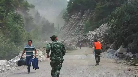 (5)2017年8月,九寨沟发生地震,乱石飞泻处,众人逃离时,武警战士张国全却逆行冲向塌方地段。