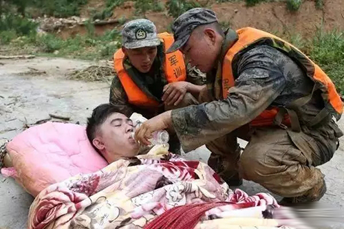 (7)2016年,“莫兰蒂”台风后,官兵徒步深入灾区,在半米深的泥石流和乱石堆中,抬着受伤人员与死神赛跑。一路八小时,战士们饿着肚子,把仅有的一瓶矿泉水留给了受伤群众。有中国军人的地方,就有依靠。