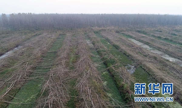 在位于湖南沅江市的南洞庭湖自然保护区核心区内,一大片欧美黑杨林正在被清理(2017年11月27日摄)。新华社记者 李尕 摄