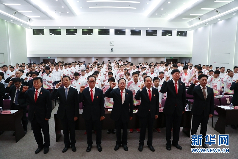 8月6日,代表团成员在大会上宣誓。新华社记者 曹灿 摄