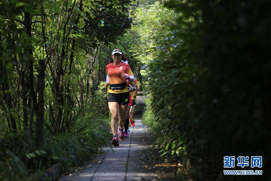 8月8日全民健身日来临,“北碚跑团”的成员们在缙云山的步道上开展常规训练。“北碚跑团”成立于2014年,由重庆市北碚区户外运动爱好者自发组成,他们相约参加户外跑步及越野跑活动,在与大自然的亲密接触中,陶冶身心、强身健体。目前,“北碚跑团”拥有跑步爱好者800多人,多人次在全国越野跑、马拉松赛事中获奖。 新华社发(秦廷富 摄)