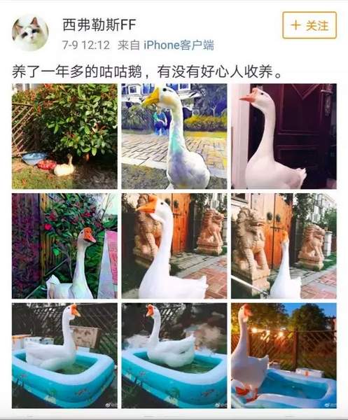 原来前些日子,一位名叫“西弗勒斯FF”的网友发微博称,自己是上海松江区宠物鹅的主人,由于要搬家,养了一年半的鹅无法继续养下去,想问上海海事大学能不能帮忙收养,并称自己的鹅非常英俊。