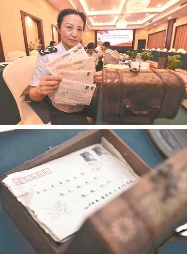 60后“爱心妈妈”沈虹展示这么多年保存的信件。