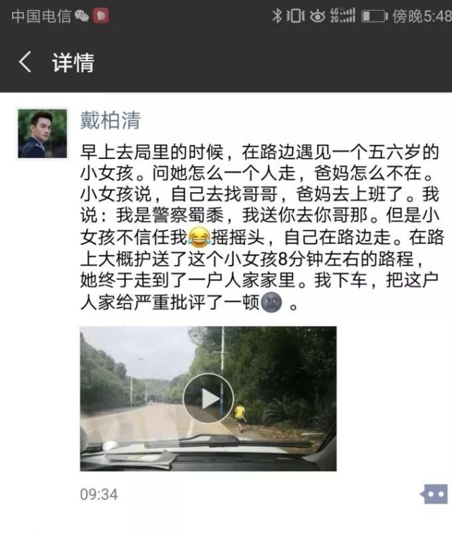 1994年出生的戴柏清其实刚入警不到一年,8分钟的暖心护送在朋友圈里刷了屏,提及此事,戴柏清淡淡地说:“换了谁都会这样做,孩子安全第一。”