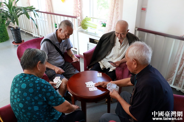 社区内的老人们正在进行棋牌游戏。(中国台湾网 尹赛楠 摄)