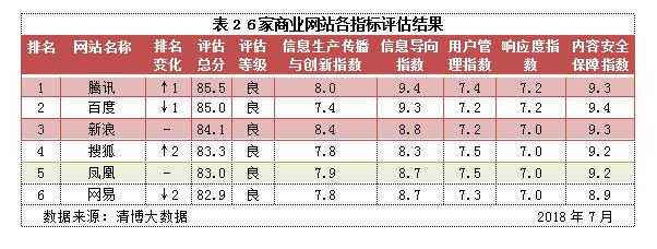 商业网站创新传播成效凸显,平台内部监管自律意识亟待加强。6家商业网站7月评估等级均为良好,总评分环比上升1.9%,信息生产与创新传播指数、用户管理指数也分别提高1.3%、1.6%。腾讯、百度、新浪在转载中央媒体时政新闻、社评时论方面主动积极,信息导向能力优异,总分排名分列前三。