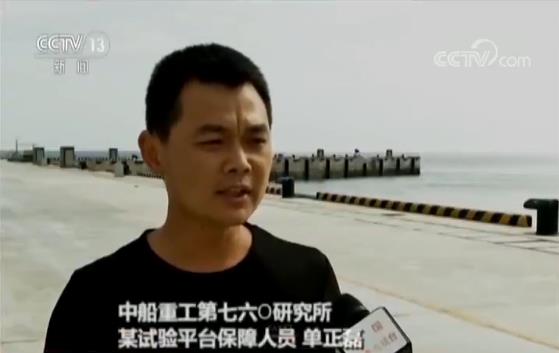 中船重工第七六O研究所某试验平台保障人员单正磊:“当时左右(晃动)都达到了15度,往左15度往右15度,(晃动)特别厉害,人在上面都站不稳了。”