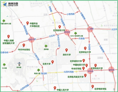 其中,广渠门地区易拥堵的路段有崇文门内大街、珠市口东大街、幸福大街、东二环、通惠河北路、东三环南路、劲松路等路段。中关村地区易拥堵的路段有圆明园西路、万泉河路、中关村北大街、学院路,易拥堵的桥区包括海淀桥、肖家河桥、箭亭桥、上清桥、学院桥、健翔桥等。