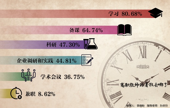 调查显示,“学习”“备课”是高职青年教师暑期间的“重头戏”。