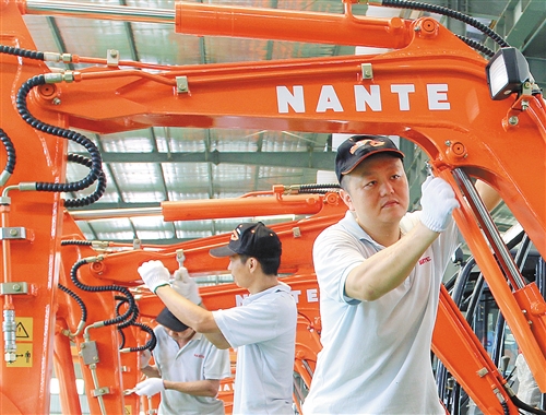 江西省高安高新技术产业园南特机械有限公司的“扶贫车间”里,员工在安装设备。该市引导企业通过“企业+扶贫车间+贫困户”的形式,带动有劳动能力的贫困群众脱贫致富。 彭松林 摄