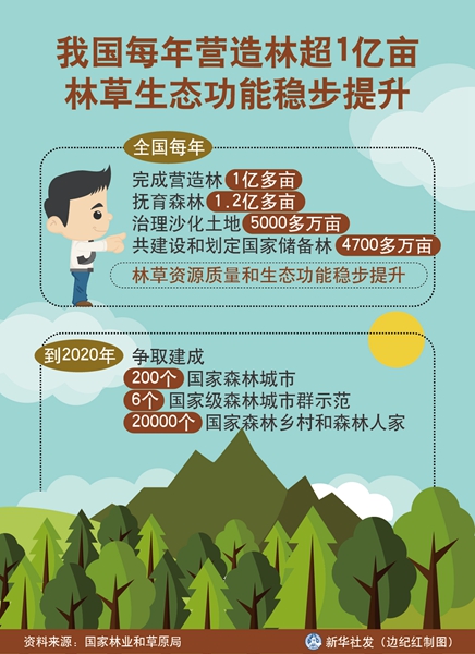 图表:我国每年营造林超1亿亩 林草生态功能稳步提升 新华社发 边纪红 制图