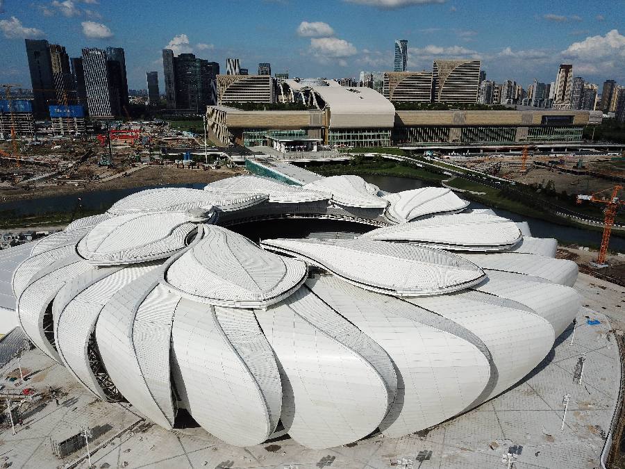 杭州:奥体“小莲花”即将绽放