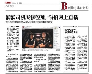 2016年,新京报曾报道过有滴滴司机在“熊猫TV”进行边开车边直播的行为。当时,这名滴滴司机在车内安装了一只隐藏的摄像头,每晚11点左右准时守候在首都机场外,专门接空姐订单。而他直播的内容,正是其在车内与空姐聊天的过程。由于直播内容涉嫌侵犯乘客隐私,滴滴公司已对这名司机做出了“即刻封禁”的处理,“熊猫TV”平台也于第一时间对涉事主播做出封停处理,并对事件中的空姐表示歉意。