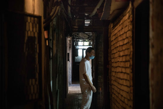 8月28日,天津市,来自山东的茂升在租住的居民楼道里乘凉。为了给妻子玉娟治疗白血病,他们在与中国医学科学院血液病医院一墙之隔的海光新村租下一间卧室,房间闷热潮湿,每月房费1100元,电费自理。这两栋小楼里住着大约30户居民,不少是跟他们一样来津求医的患者和家属。视觉中国供图