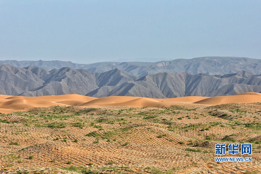 伸向黄沙的绿色“触手”。新华网 陈延特摄