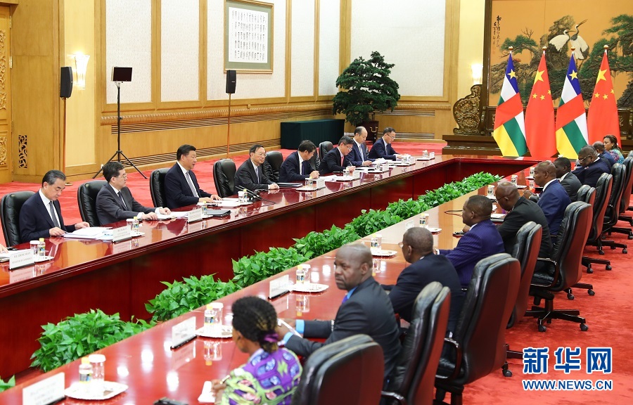 习近平强调,中方始终支持并积极帮助中非和平进程和国家建设,祝愿中非共和国在实现国家持久和平和可持续发展道路上不断取得新进展。中方愿同中非不断增进政治互信,积极拓展两国务实合作,帮助中非改善粮食安全和人民生活,继续向中非派遣医疗队。中方会继续在多边组织为中非仗义执言,推动国际社会加大对中非和平重建进程的关注和投入,提供更多建设性帮助。