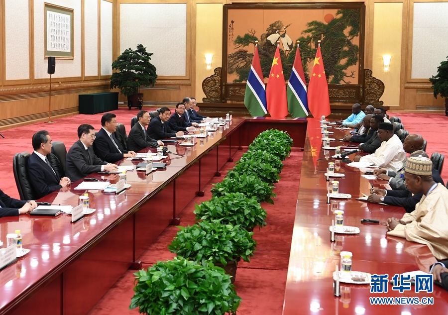 9月6日,国家主席习近平在北京人民大会堂会见冈比亚总统巴罗。 新华社记者谢环驰摄