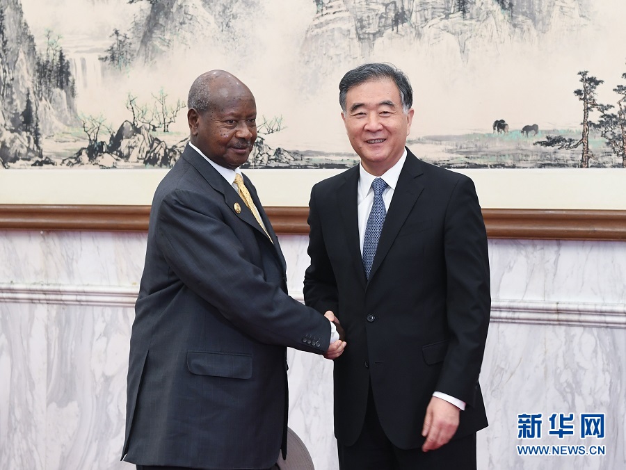 9月6日,全国政协主席汪洋在北京钓鱼台国宾馆会见乌干达总统穆塞韦尼。 新华社记者 申宏 摄