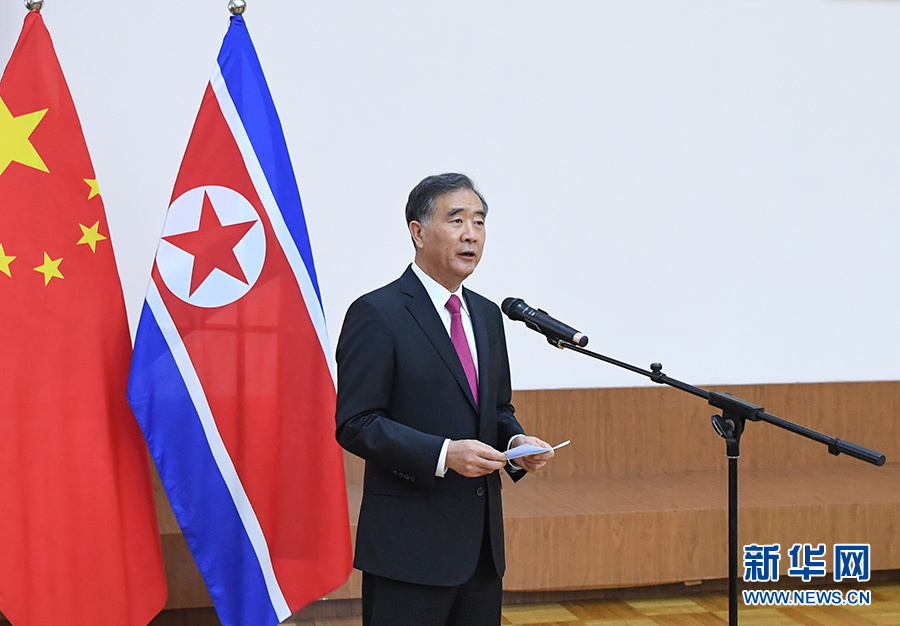 9月6日,中共中央政治局常委、全国政协主席汪洋在北京出席朝鲜驻华使馆国庆70周年招待会并致辞。 新华社记者 申宏 摄