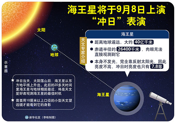 图表:海王星将于9月8日上演“冲日”表演 新华社发 李栋 制图