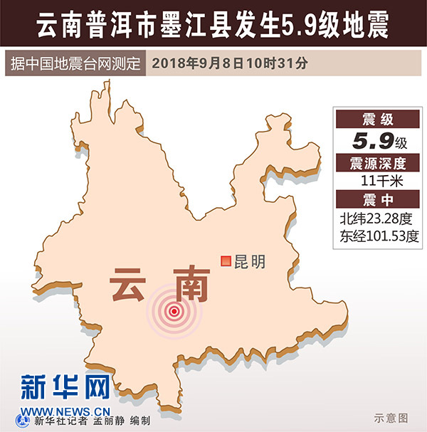 图表:云南普洱市墨江县发生5.9级地震 新华社记者 孟丽静 编制