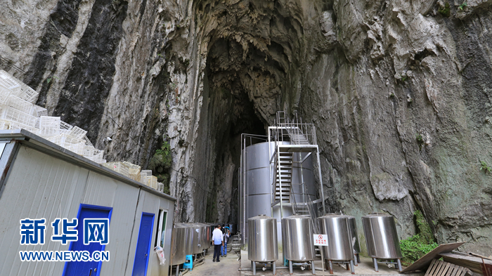 8月30日,安顺市西秀区大坝村投资建设的果酒厂利用天然洞穴建成的果酒储存车间。新华网 卢志佳 摄