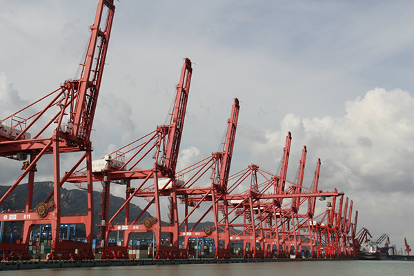作为采访团成员,记者参观了连云港港口,几架红色的龙门吊正在作业。据港口的工作人员介绍,来自日韩、中亚、欧洲的货物每天在这里集聚,或从这里出发。24小时,昼夜不停。