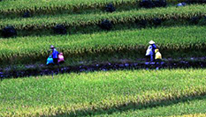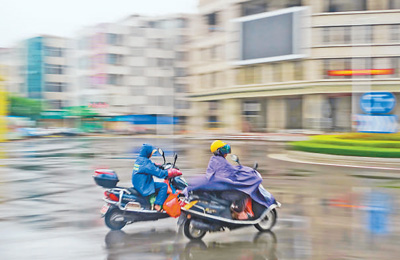 13日,广东湛江廉江市,市民冒雨出行。罗畅 摄(人民视觉)