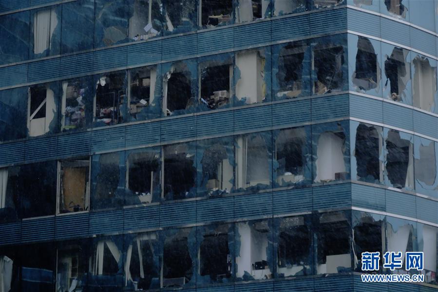 位于香港九龙半岛红磡海滨的一座写字楼,窗户玻璃破碎严重