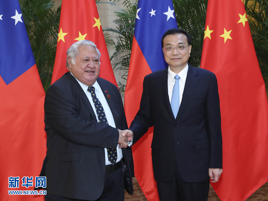 李克强表示,萨摩亚是最早同中国建交的太平洋岛国之一。建交以来,双边关系取得长足发展。中方重视中萨关系,赞赏萨方长期坚定奉行一个中国政策,支持萨摩亚走符合本国国情的发展道路,加强同萨方团结合作。