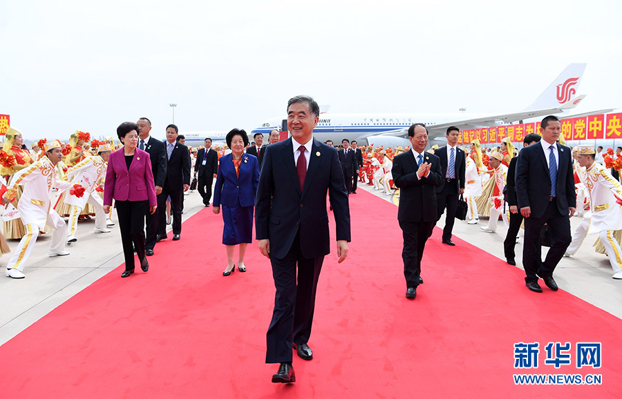 9月19日,以中共中央政治局常委、全国政协主席汪洋为团长的中央代表团飞抵银川,出席宁夏回族自治区成立60周年庆祝活动。中央代表团在机场受到宁夏各族群众的热烈欢迎。 新华社记者 张领 摄