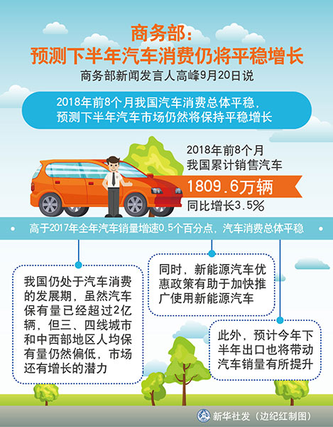 图表:商务部:预测下半年汽车消费仍将平稳增长 新华社发 边纪红 制图