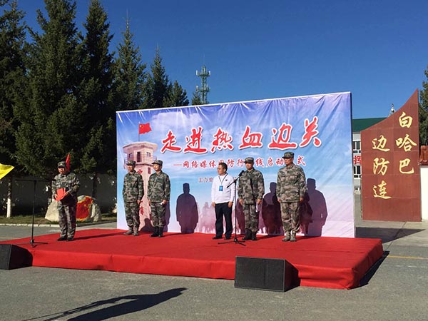 图为“走进热血边关”网络媒体国防行活动在西线白哈巴边防连的启动仪式现场。新华网 王莹 摄