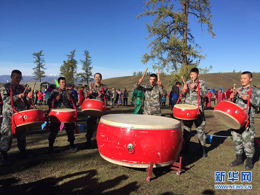 图为官兵打鼓为比赛助威。(新华网记者 王莹)