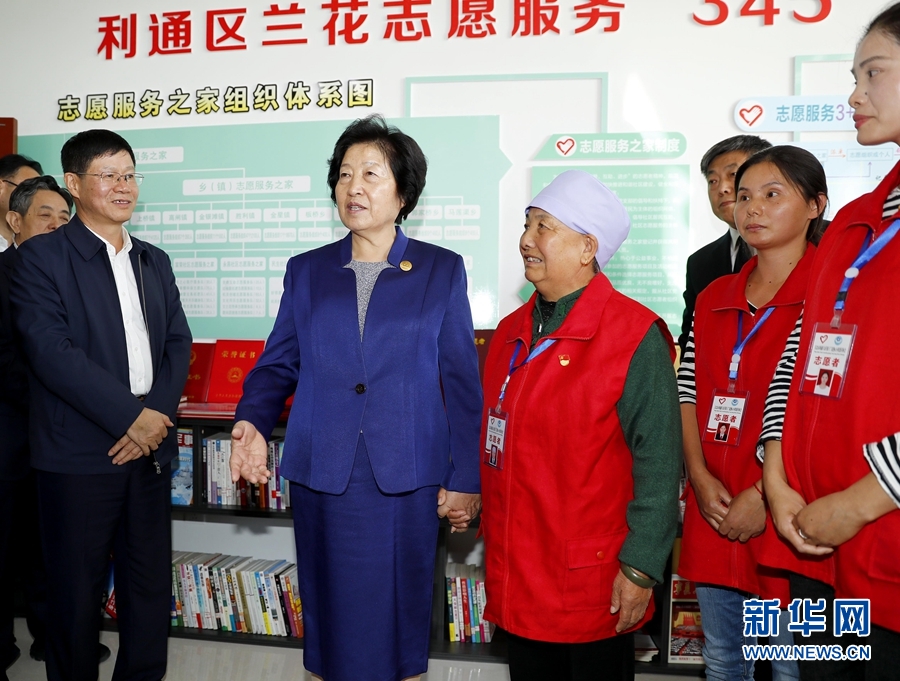 9月21日,中共中央政治局委员、国务院副总理、中央代表团副团长孙春兰率中央代表团二分团,带着以习近平同志为核心的党中央的亲切关怀和全国人民的深情厚谊,在吴忠看望慰问各族各界干部群众,共同庆祝宁夏回族自治区成立60周年。这是孙春兰在吴忠市利通区胜利镇永昌社区了解民族团结进步示范社区创建情况。 新华社记者 陈建力 摄