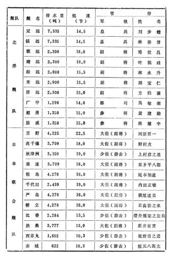 甲午海战中日双方战力对比。戚其章著《北洋舰队》截图