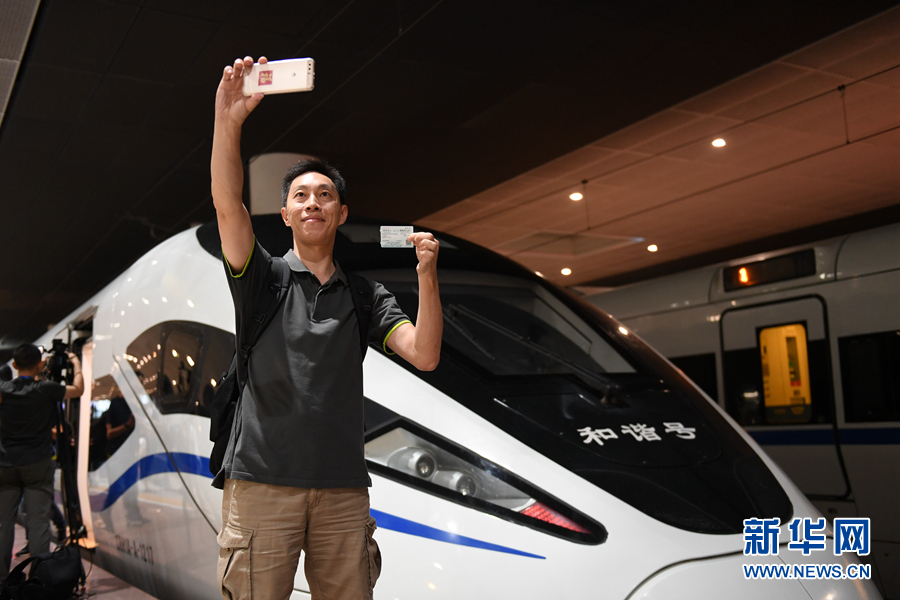 9月23日,搭乘G5711次高铁列车前往香港西九龙站的乘客在深圳北站拍照留念。 当日6时44分,G5711次高铁列车从深圳北站开往香港西九龙站,标志着广深港高铁全线开通,香港段正式投入运营。 新华社记者毛思倩摄