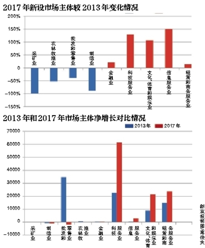 而在北京新设市场主体中,科技、文化、信息等高端服务业占总量的近一半。