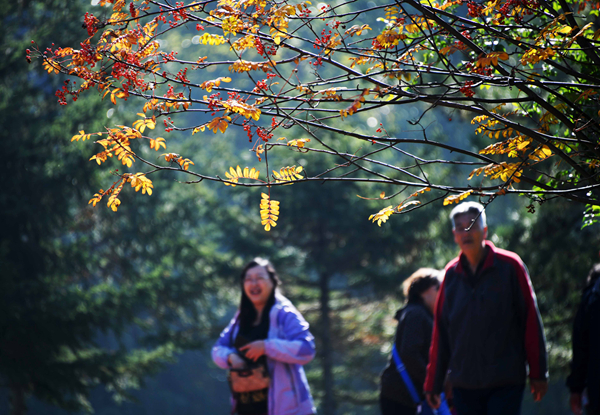 10月3日,在哈尔滨湘江公园,市民在游玩。当日是国庆黄金周的第三天,黑龙江哈尔滨市许多市民来到户外“约会”大自然。新华社记者王建威摄