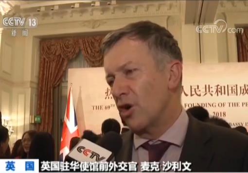 英国驻华使馆前外交官 麦克·沙利文(中文):这个(中国的变化)用半天也说不完,我第一次到中国是1982年,改革开放刚开始,那时候我们根本没有想到现在中国会成为那么成功的国家,那么繁荣的国家,影响那么大的国家,(上世纪)八十年代中国人、外国人,我们都没有想像会成为这样,向你们69年来取得的伟大成就表示祝贺。