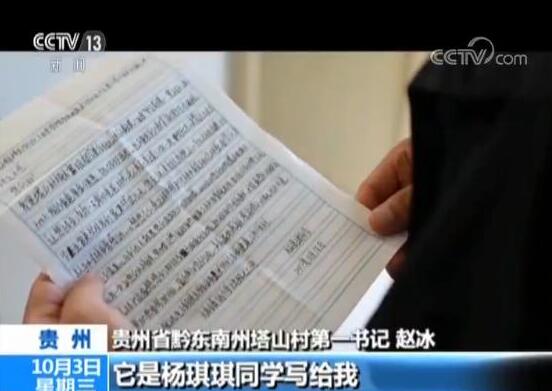 被评为脱贫攻坚优秀村第一书记,我很激动。更让我感动的是,自己一点小小的付出,老百姓都记在心上。这封信在我心里是一张特殊的奖状,它是杨琪琪同学写给我和我们学校老师的。琪琪家庭贫困,初一那年就想辍学,我们多方对接,一对一帮扶了琪琪等16名贫困学生。琪琪在信里说,要以我们为榜样,将来为祖国作贡献,帮助需要帮助的人。我从来没有那么深刻感受到自己的使命和责任,这是他们给我最大的褒奖,更是一种激励。