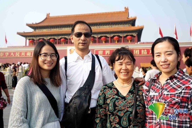 来自湖南衡阳的姐妹花与爸爸妈妈。中国青年网记者 秦亮 摄