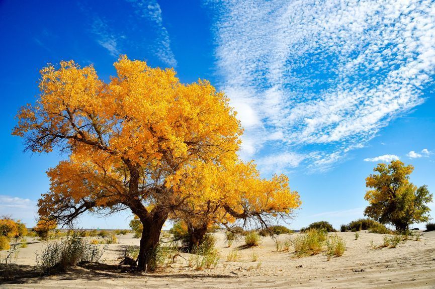 2018-09-30,内蒙古额济纳。晴空万里蓝镶白,胡杨浸秋入人怀。作者:笑口常开