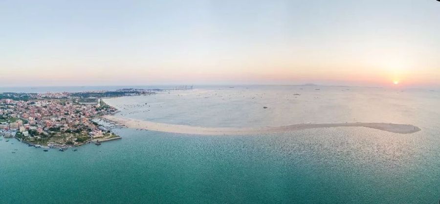 2018-10-04,福建晋江。海上沙堤在碧海蓝天中美若玉带。作者:宋为伟