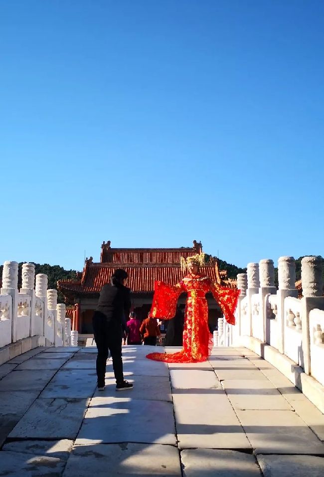 2018-10-02,河北遵化。游客身着古装在清东陵景区古建筑前拍摄艺术照。作者:梁凯
