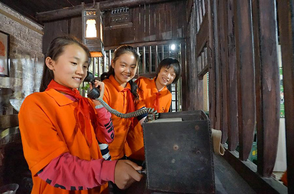 10月9日,学生在肥东县“百年邮电”陈列馆里参观体验。当日是世界邮政日,安徽省合肥市肥东县长临河学区中心学校组织学生来到当地“百年邮电”陈列馆,参观了解中国邮政事业的变迁。该馆是原长临河古街老邮政局。近年来,这里被逐渐打造成一处展示邮票藏品、邮政物件的陈列馆。